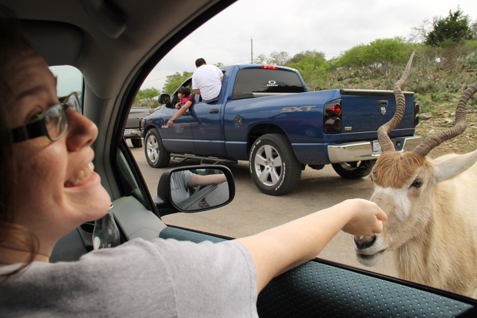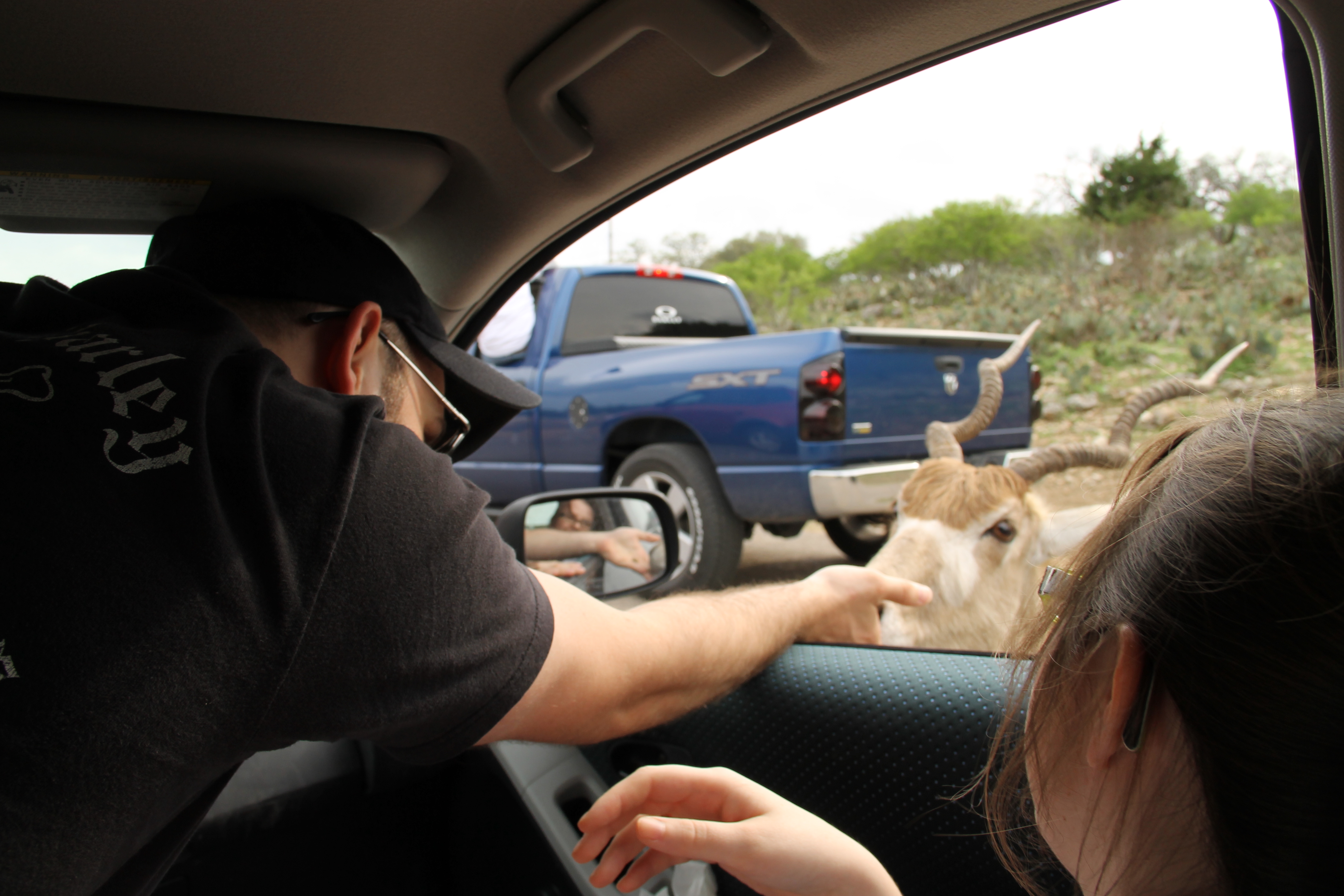 Here’s the Natural Bridge Wildlife Branch part of our adventure, continued from the last post with Dani and David. The Wildlife Ranch wasn’t as good as the one up in Glen Rose, which I went to about 4 years ago – they have more animals and you got closer to a bigger variety – but it was fun, you could go around the trail as many times as you wanted, and they are expanding. All in all, not bad. There was a half-hour wait to get in. Maybe longer. I was having a good time braiding Dani’s hair, so I didn’t really notice.