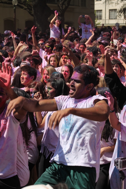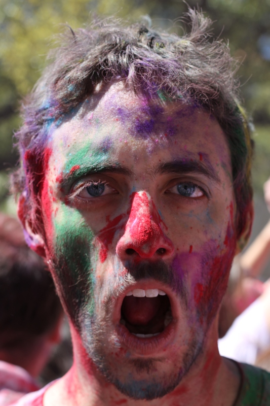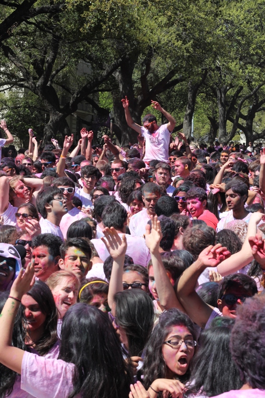Today the UT Hindu Student Association threw their annual Holi event – the Hindu festival of colors – and I ended up going last minute with a bunch of friends. Everyone had bags of colored cornstarch to throw on everyone and a few people were throwing water and water balloons. The DJ played a mix of club and Bollywood songs that made for an awesome dance mix. I bravely took my camera into the crowd – it will be receiving a professional cleaning this week – and snapped pictures when I could. Just fyi, this is open to the campus and community and there were a few families there. (It’s on campus, so no alcohol.) Check it out one day.