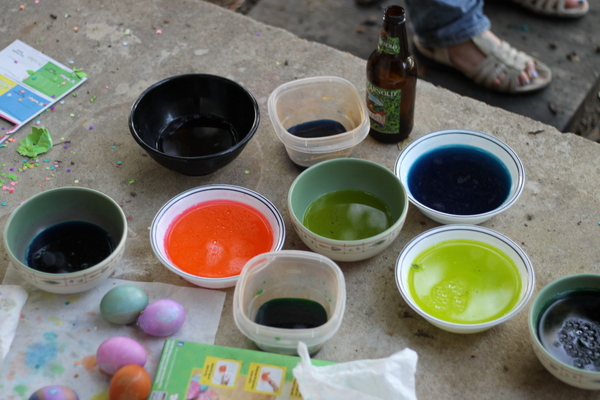 I had a couple of friends over for food, beer and egg decorating on Easter. I haven’t decorated eggs in forever and my two friends, one Jewish and the other Southern Baptist turned Buddhist, had never decorated before. Although, they were much better at than me at decorating; I’m not particularly craftsy.