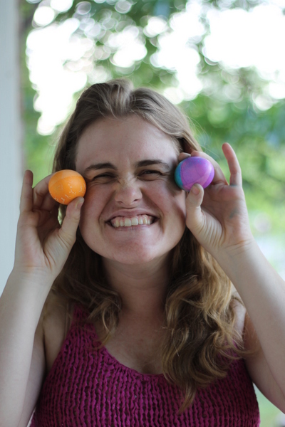 My friend Anna with her beautiful egg. (Ah! She’s an amazing conversationalist!) The confetti in her hair is from the cascerone I knocked her with.