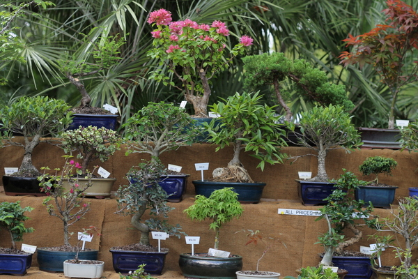 And right next to him was a bonsai dealer, Jade Gardens Bonsai Nursery, which had this darling Bougainvillea bonsai tree that I fell completley in love with. Alas, my salary is not such that it permits a $125 price tag, so our affair was sweet, short, and sordidly defined by that most vulgar of things, money.