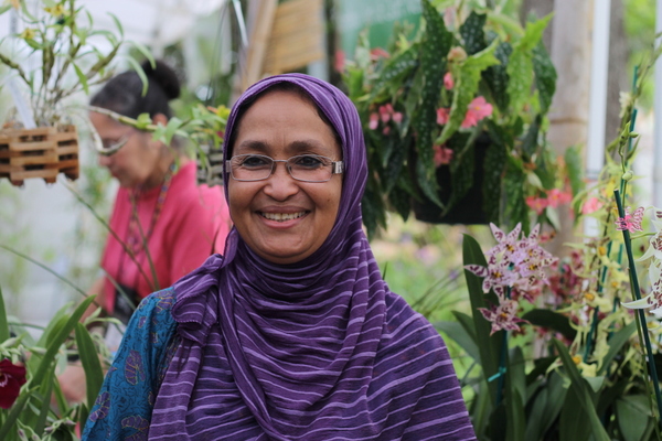 This lovely lady allowed me to take a picture of her in the orchid booth. (And then took one of me in return!) I asked her because her outfit was just as colorful as the flowers and she just seemed very nice and approachable. (all true!)