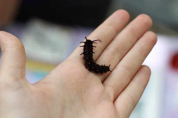 They were very nice and informative about butterflies and caterpillars – to be honest, I think this table was more directed at children than adults, but they let me play and answered all of my questions. Here’s a caterpillar exploring my fingers, which tasted of tamales.