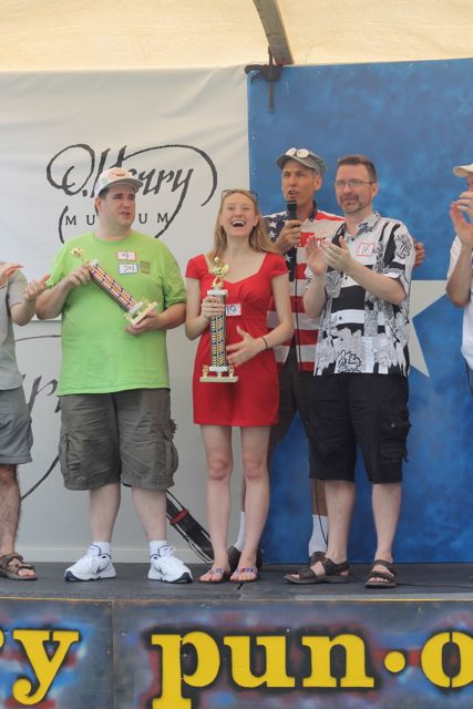 The winner of the entire pun-off (in green) and the winner of the MMMVP award (for best competitor) in the red. She also tied for 3rd.