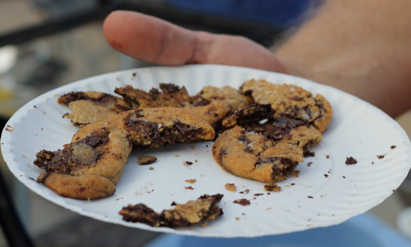 Cookies! I ate chocolate chip cookies made with ground mealworms! (They were really salty but otherwise tasted like normal cookies. In fact, they’re very similar to recipe my coworker brings in occasionally.) My objection to bug-eating is solely that I don’t like eating animals that look like animals, so the cookies were perfect!