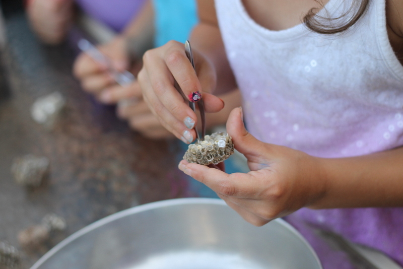 Separating out the good bugs from the bad. People brought in insects they had caught around the house.