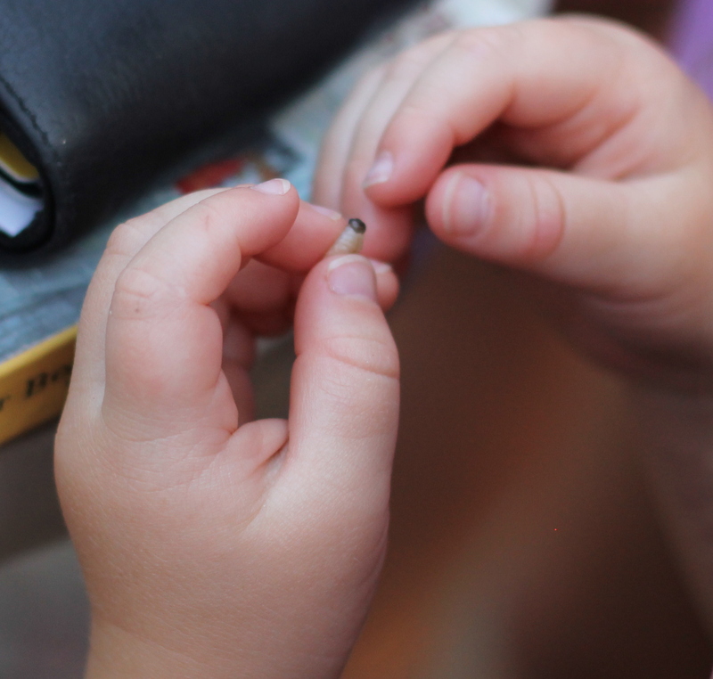 This is what a wasp larvae looks like, if you take it out of the nest with tweezers. In case you were wondering.