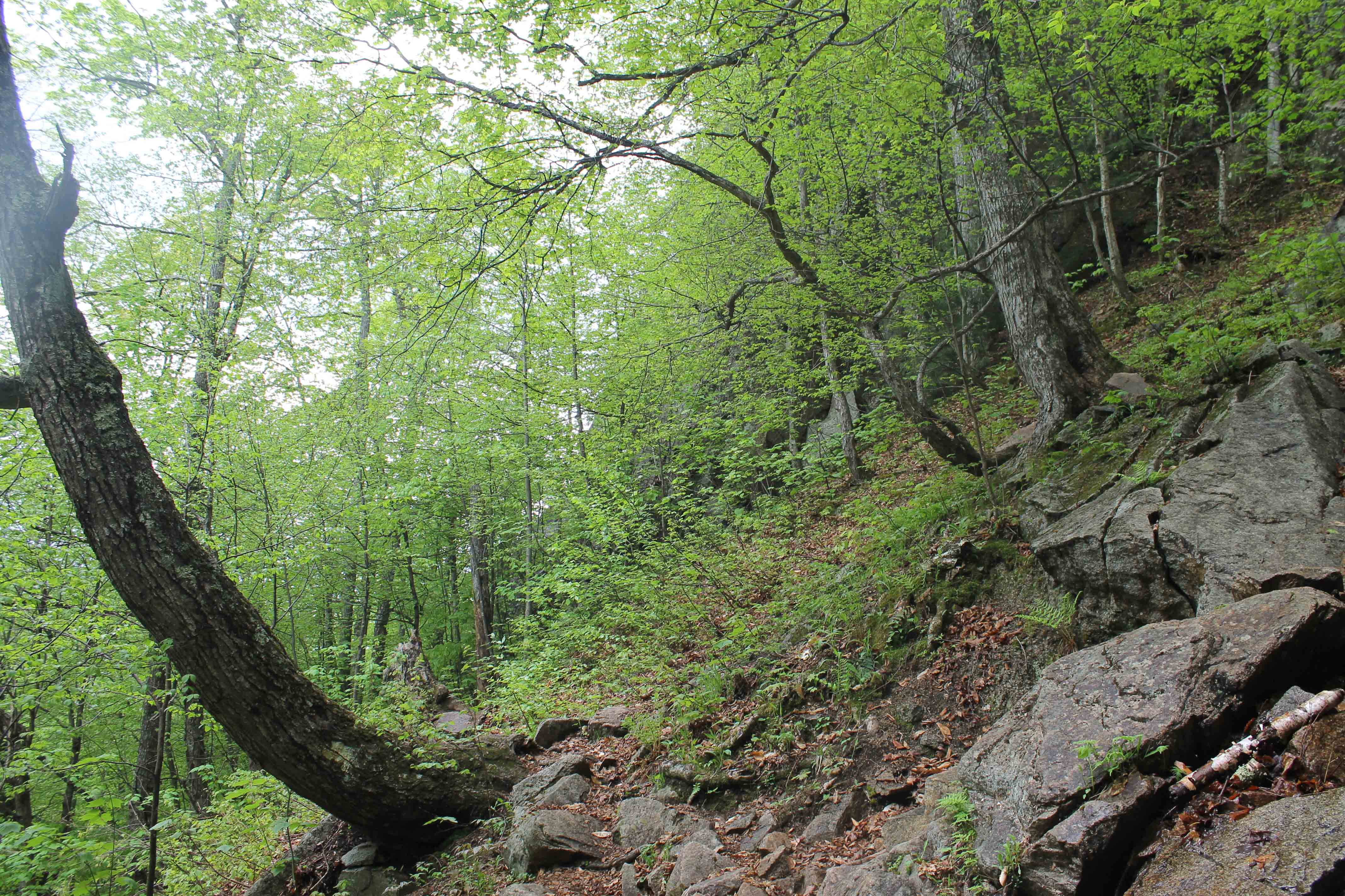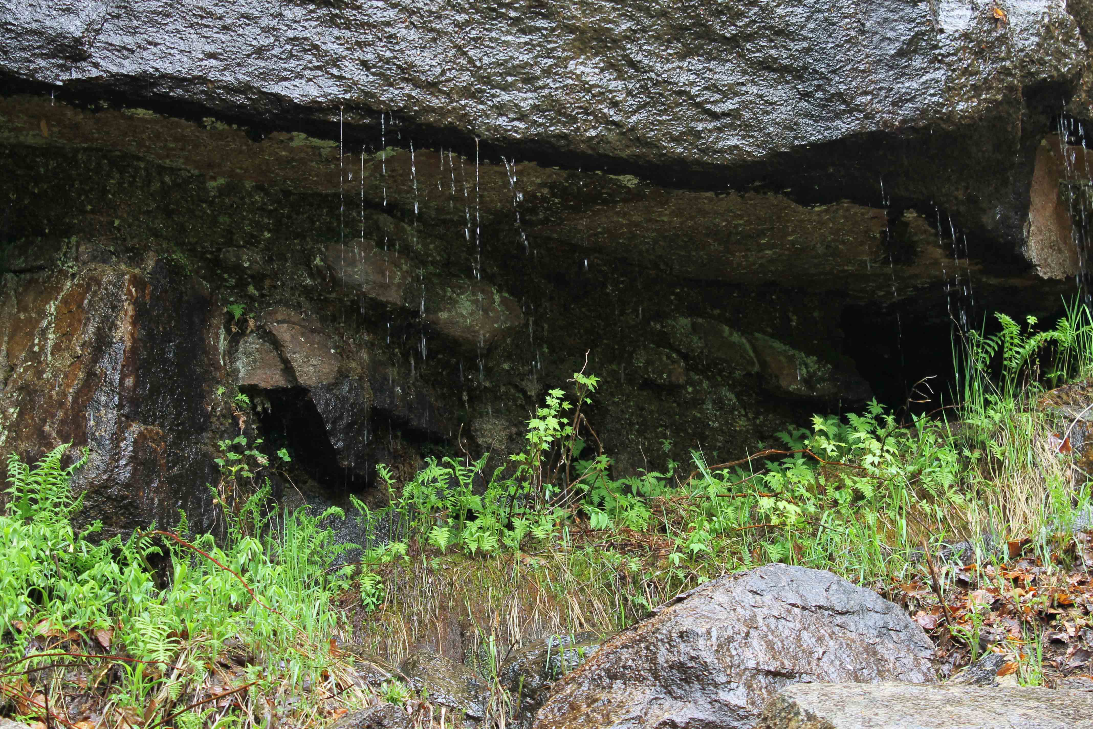 This was about a quarter way through the hike. The rain made everything wet and muddy; I loved watching the water drip off the rocks. (And there were a lot of rock features!)