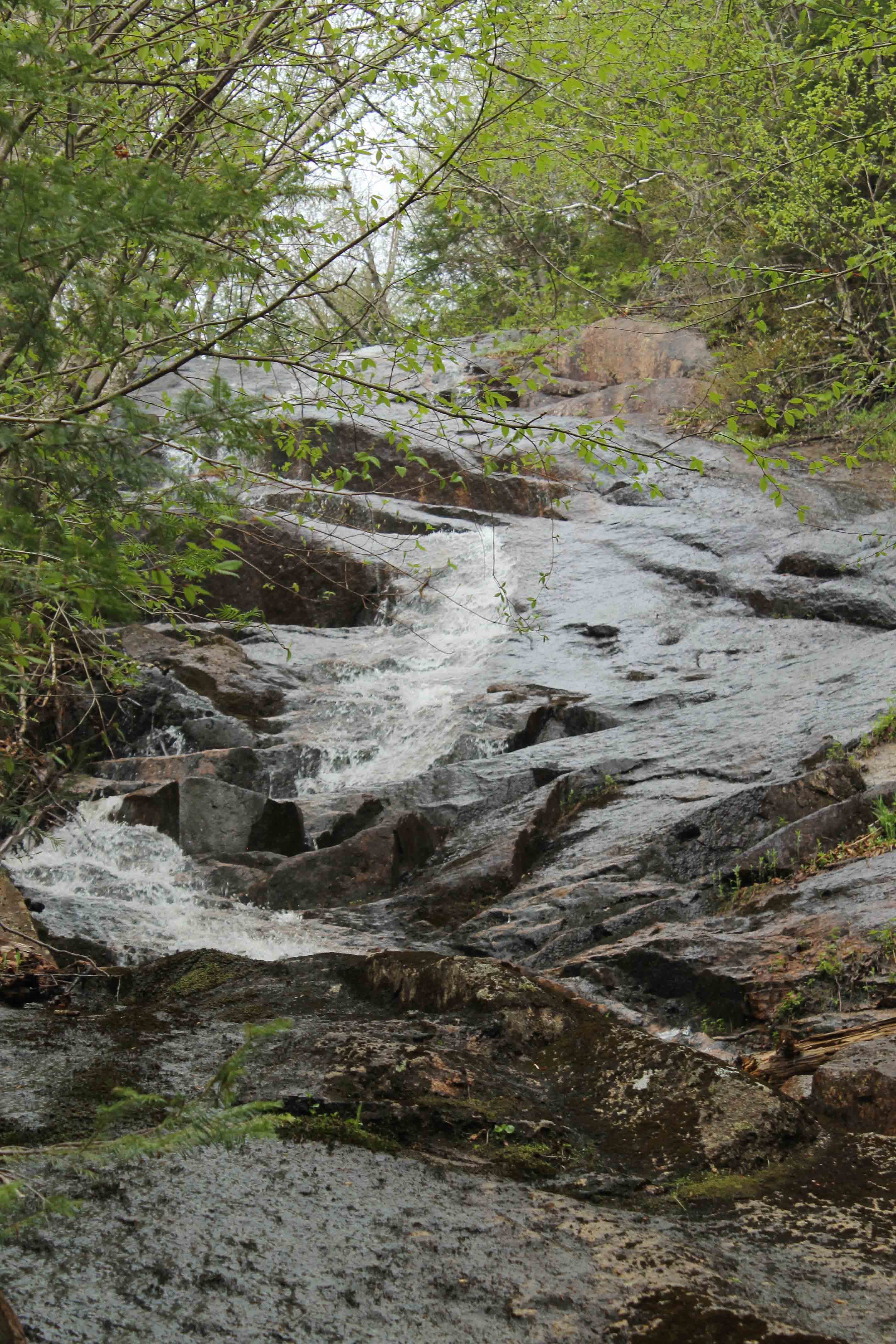 More water flowing down rocks. I thought this was the waterfall at first, and was very excited for the water but disappointed about not seeing what I imagined a waterfall to look like.
