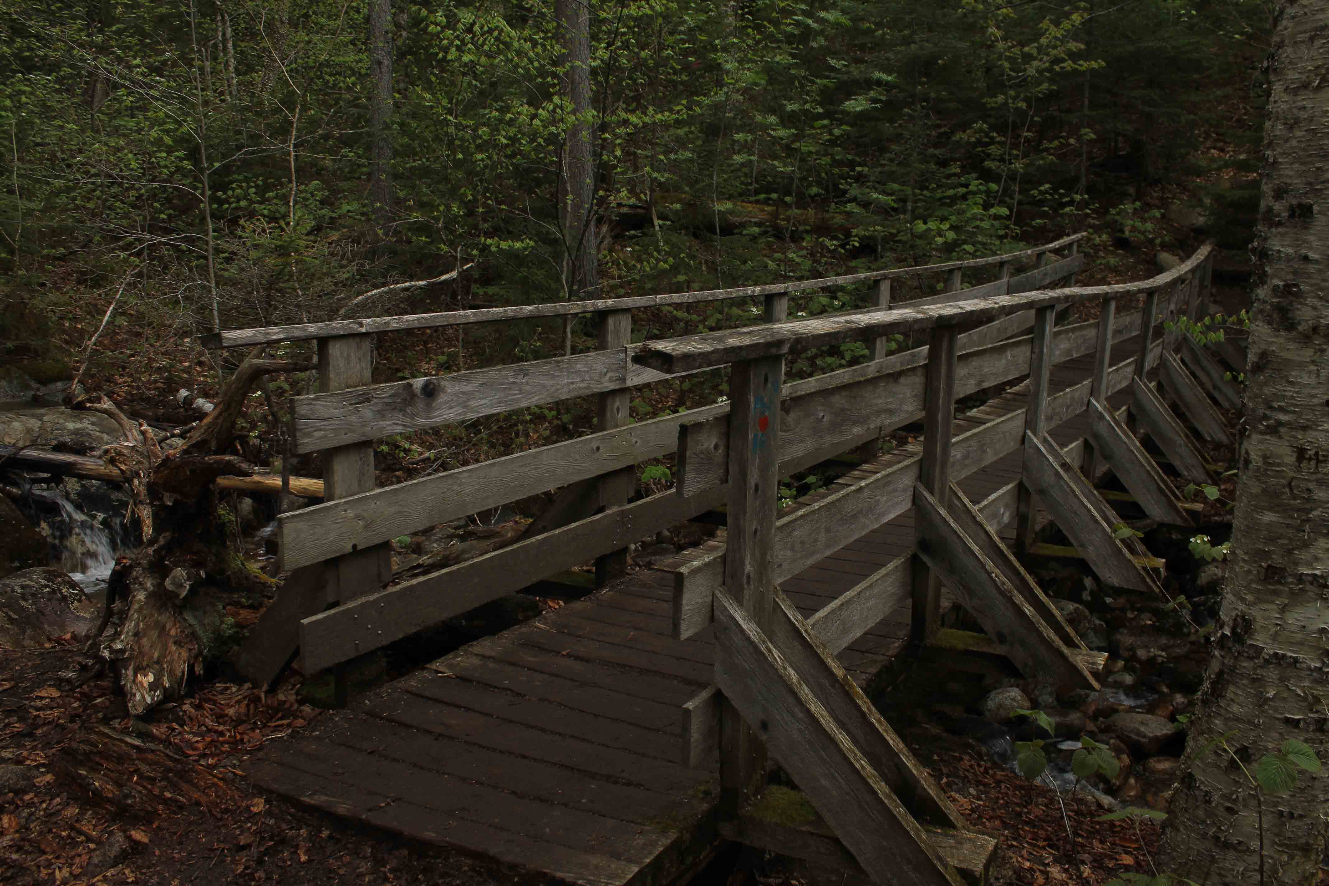 An old-fashioned wooden bridge on the way down.