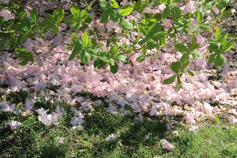 This tree had already started to shed its flowers and it looked like fairy blankets covering the ground.