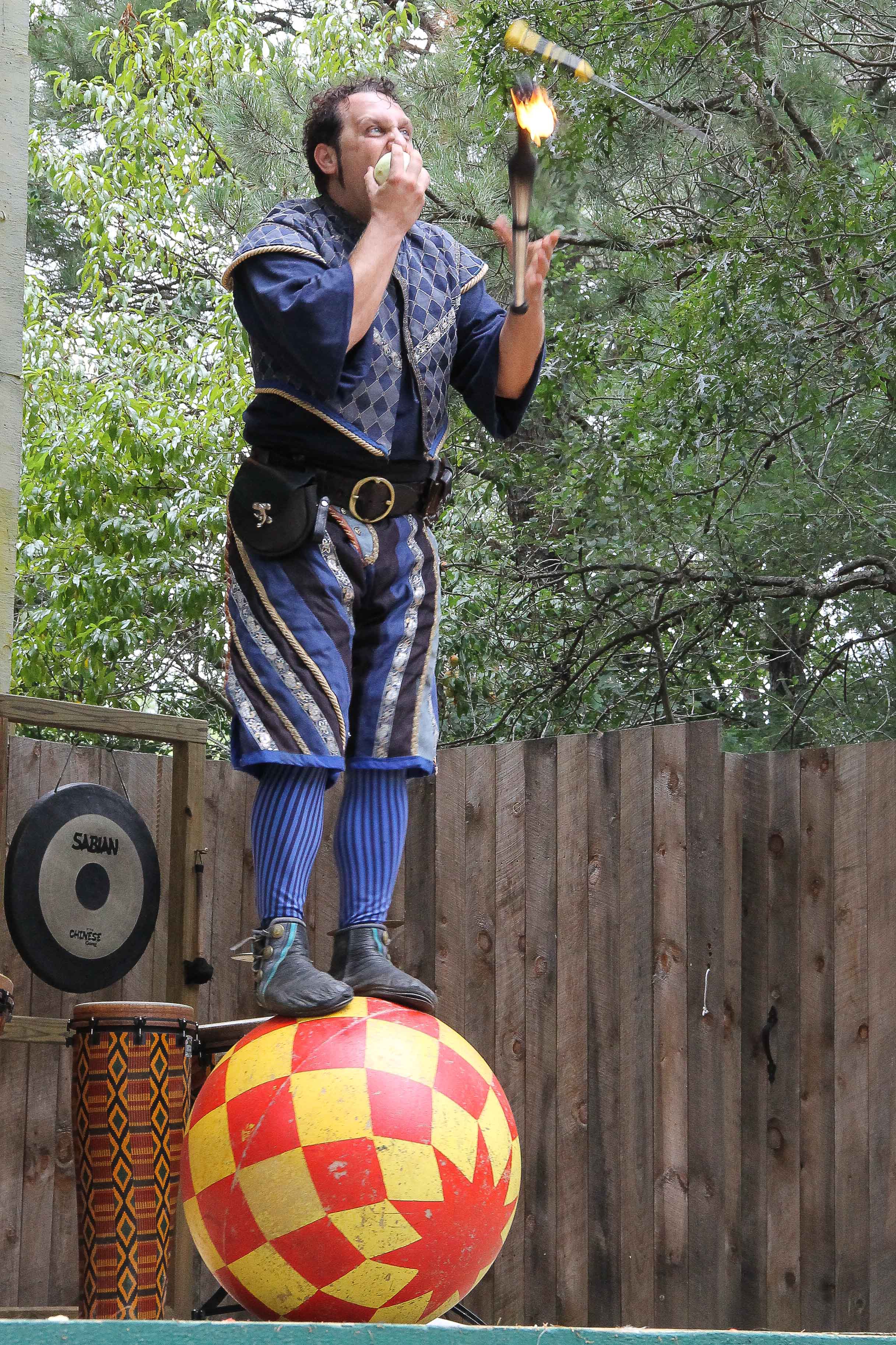 And, last but not least, the great Garbanzo, a hilarious juggler. He was the funniest act at the show, and the whole time I couldn’t figure out if he was being funny on purpose or if the most hilarious bits were just accidents. Either way, we spent the whole show laughing. Here, he’s eating an onion while juggling said onion, a knife, and a flaming torch.