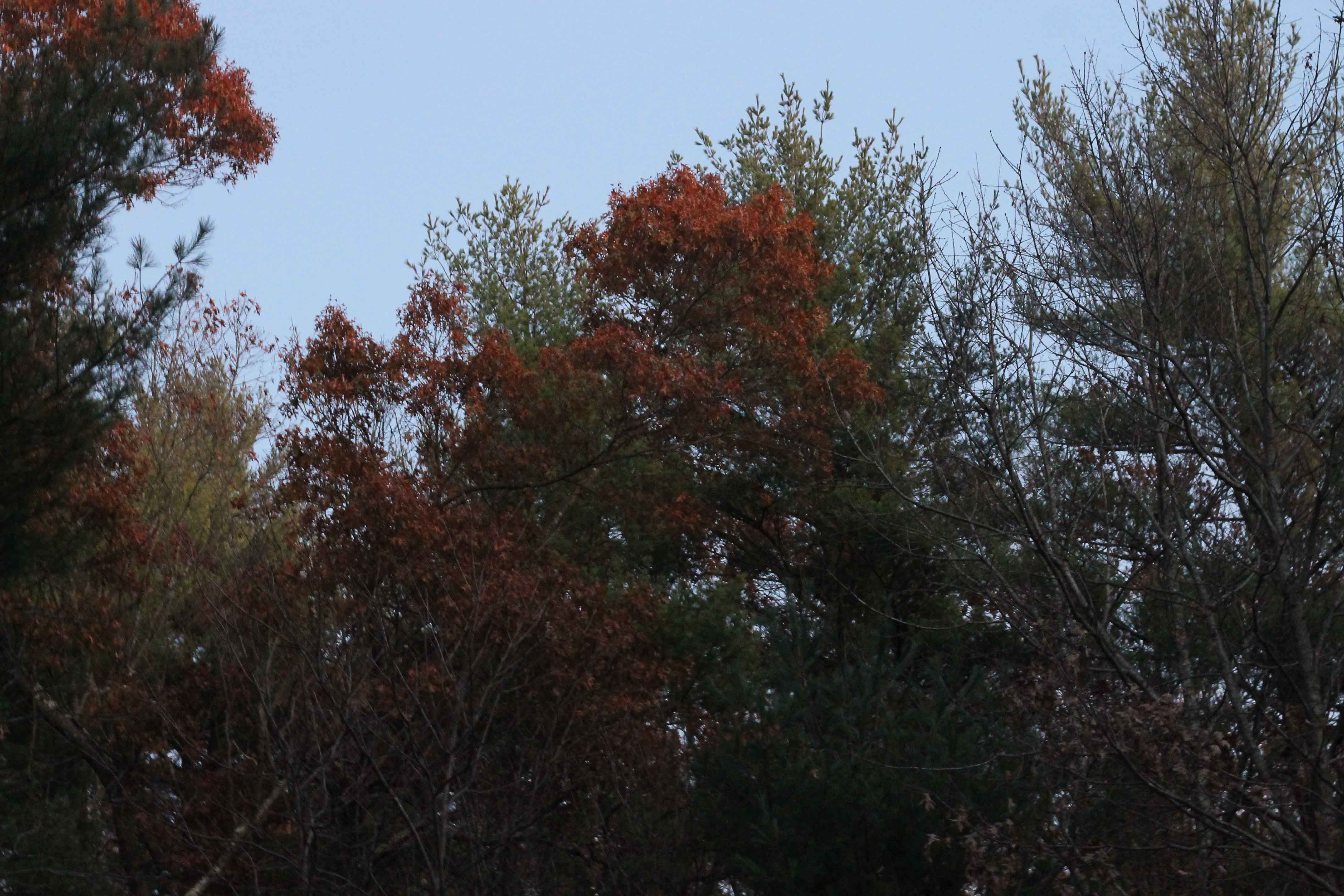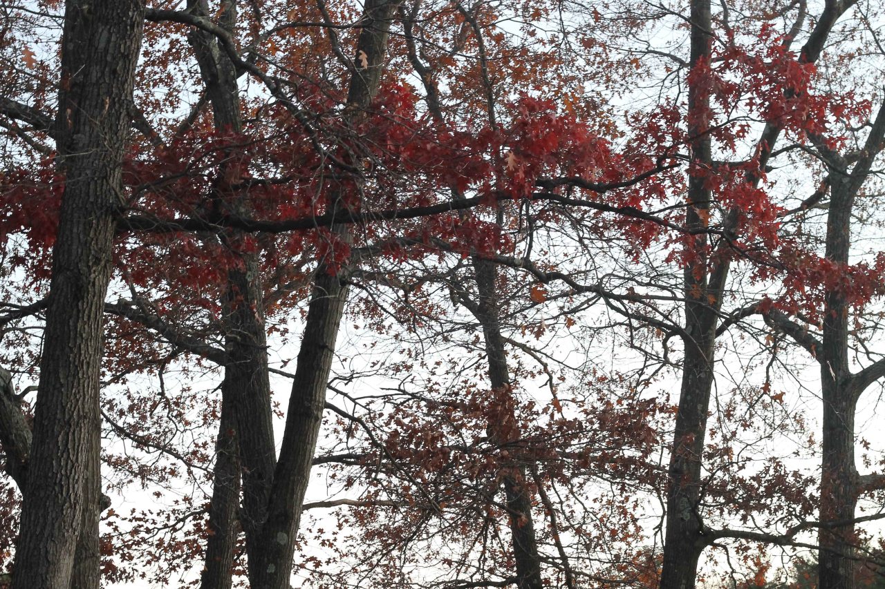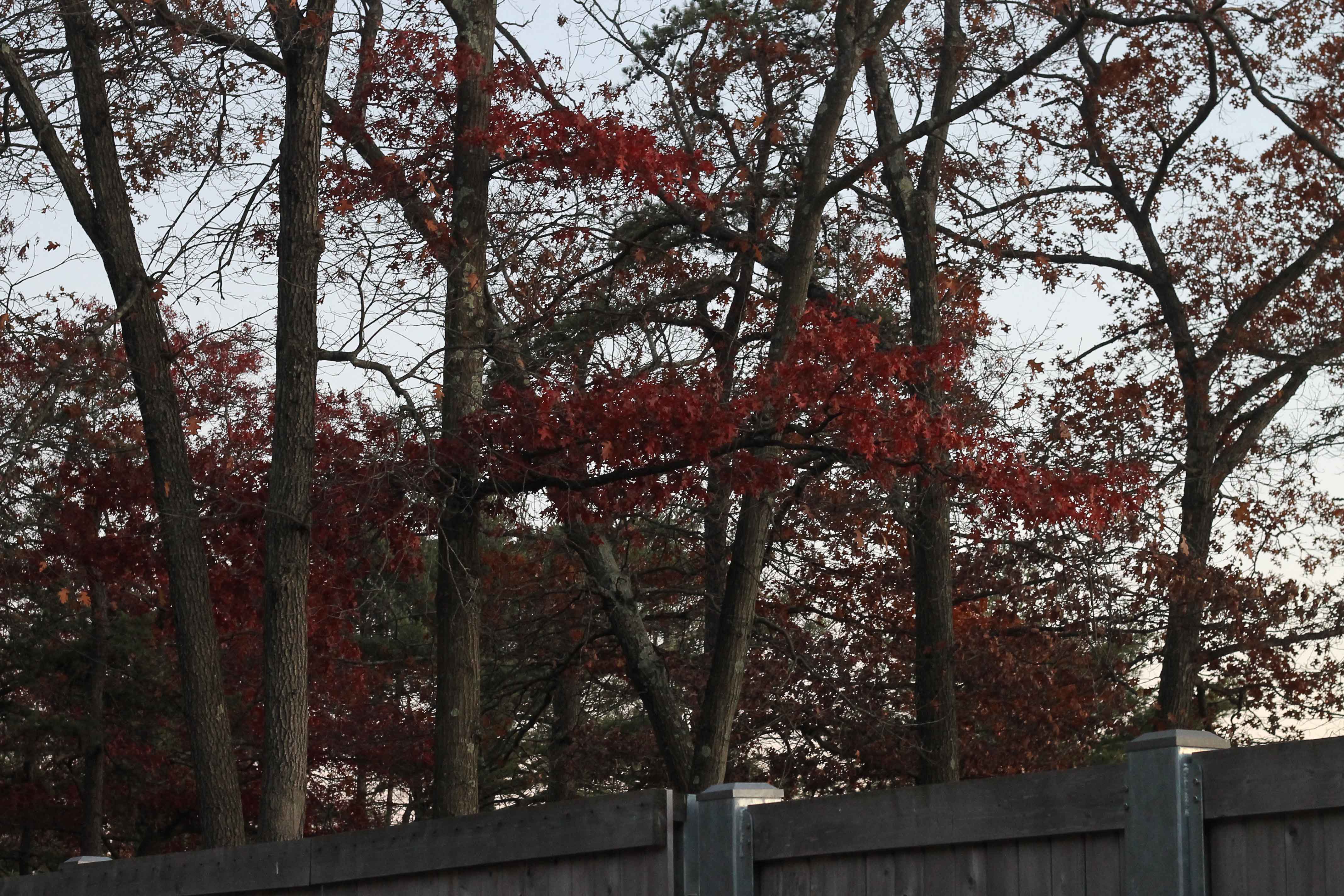 The bright red leaves! (And the pink tinge of the setting sun.) This fall has been (I’m told) really spread out, so there are trees that have completely dropped their leaves and trees that are just the most brilliant shade of red.