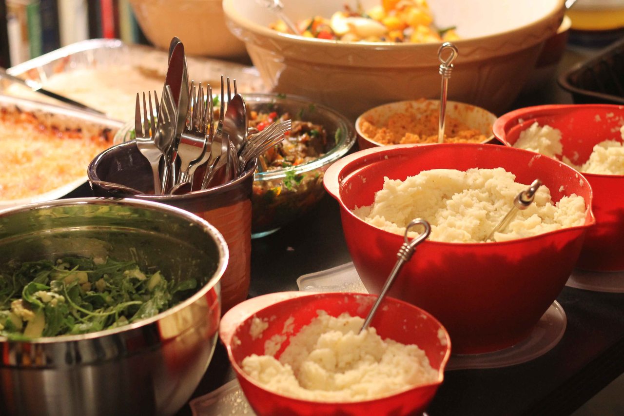 A small portion of our food, including my mashed papas. (Grandma potatoes, we call them at my house; my grandmother makes the best mashed potatoes.)