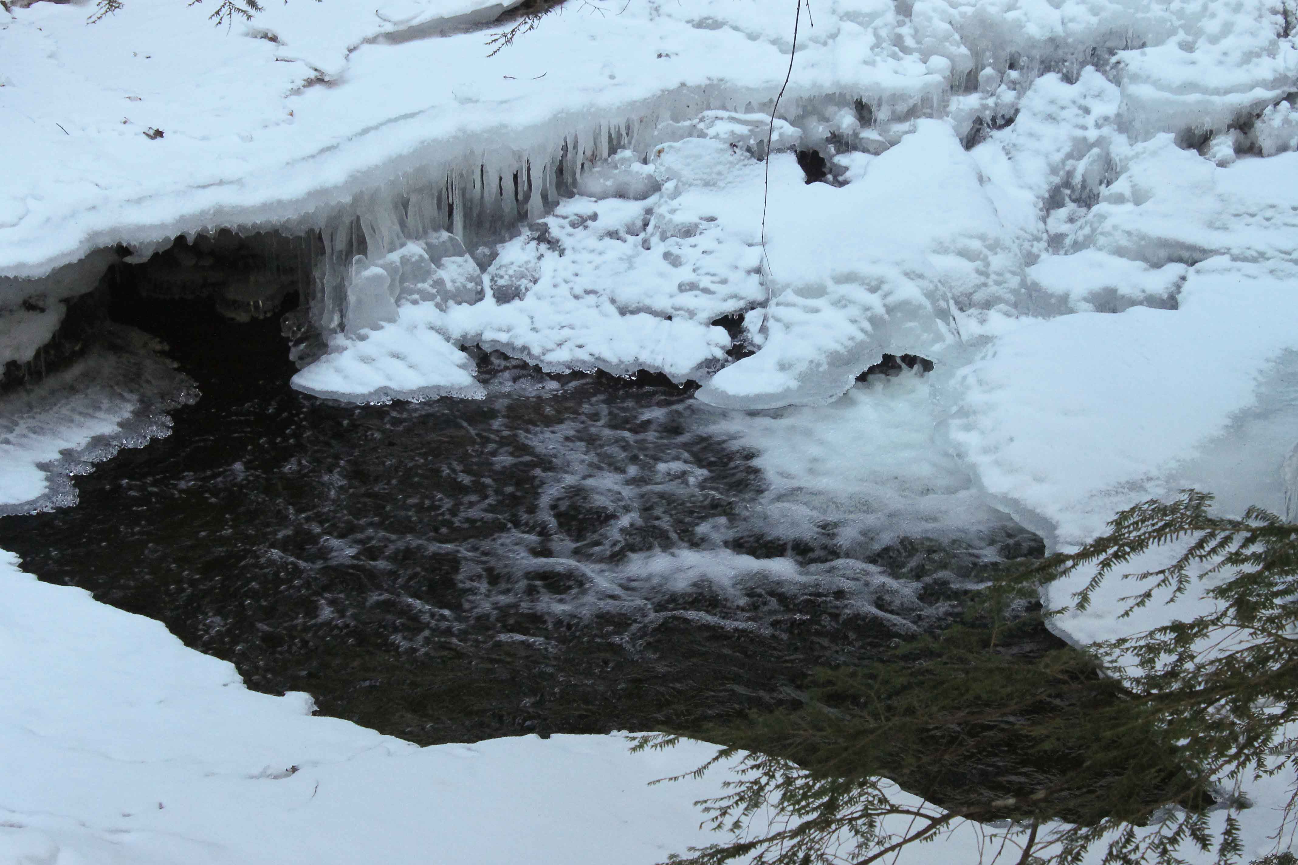 A stream we crossed on the way up – I loved all the ice formations that form and the flowing water. My white balance is off here, so it looks more blue than it is. I may be more comfortable with hiking in snowy conditions, but I still have a lot to learn about photographing it!