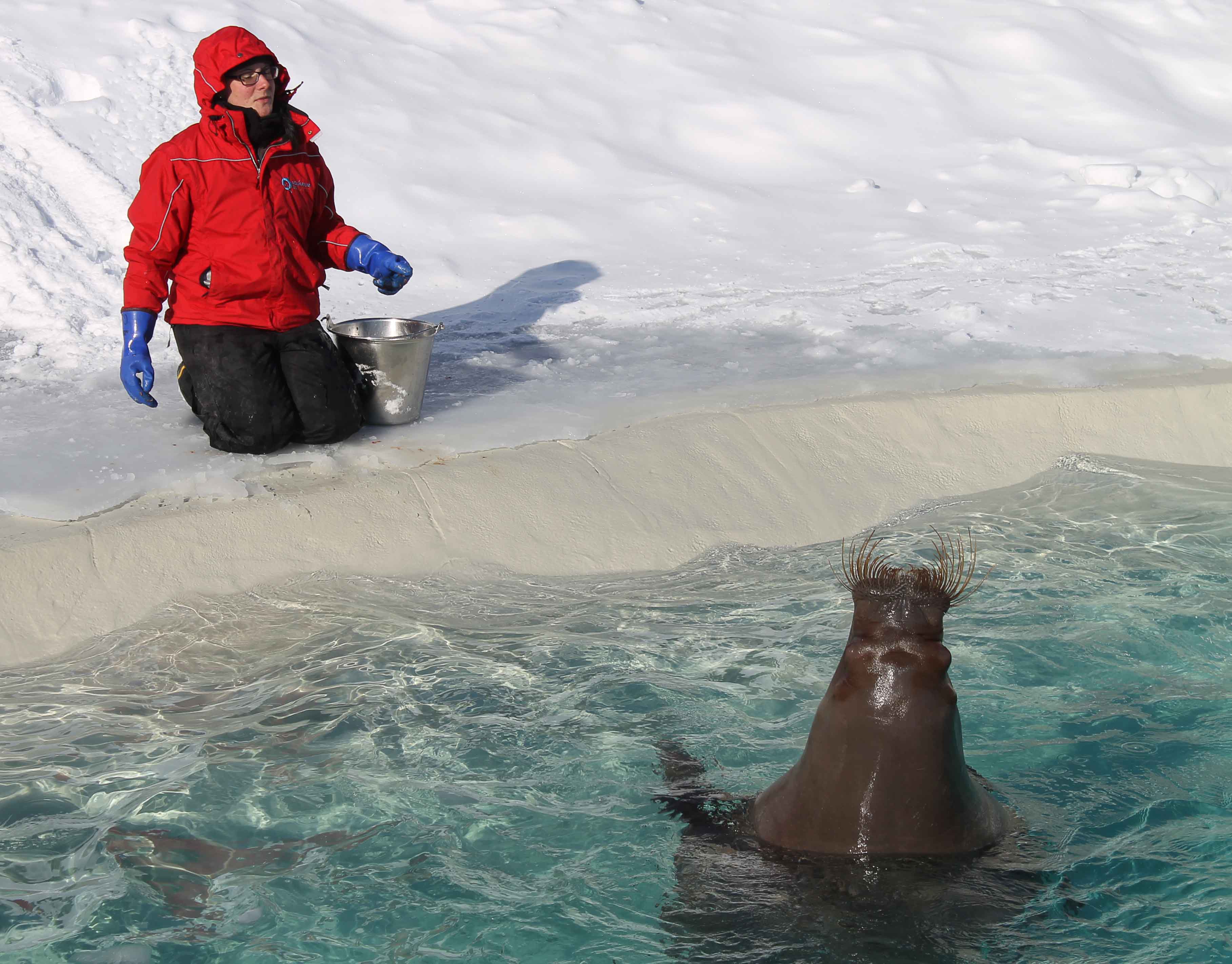We wandered by the walrus exhibit during feeding time, which happily coincides with basic training time, so we got to watch a few tricks. They were so much fun to watch!