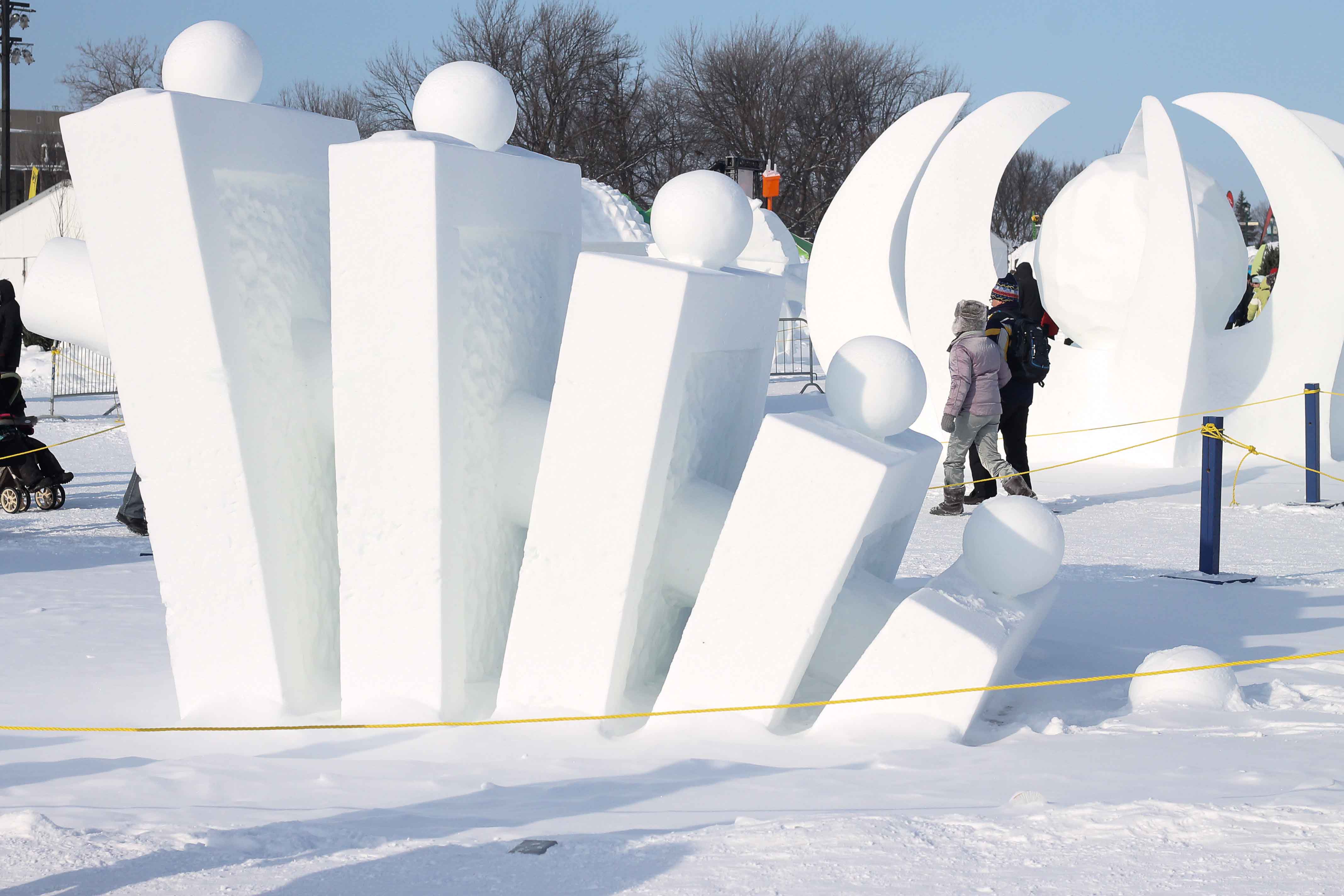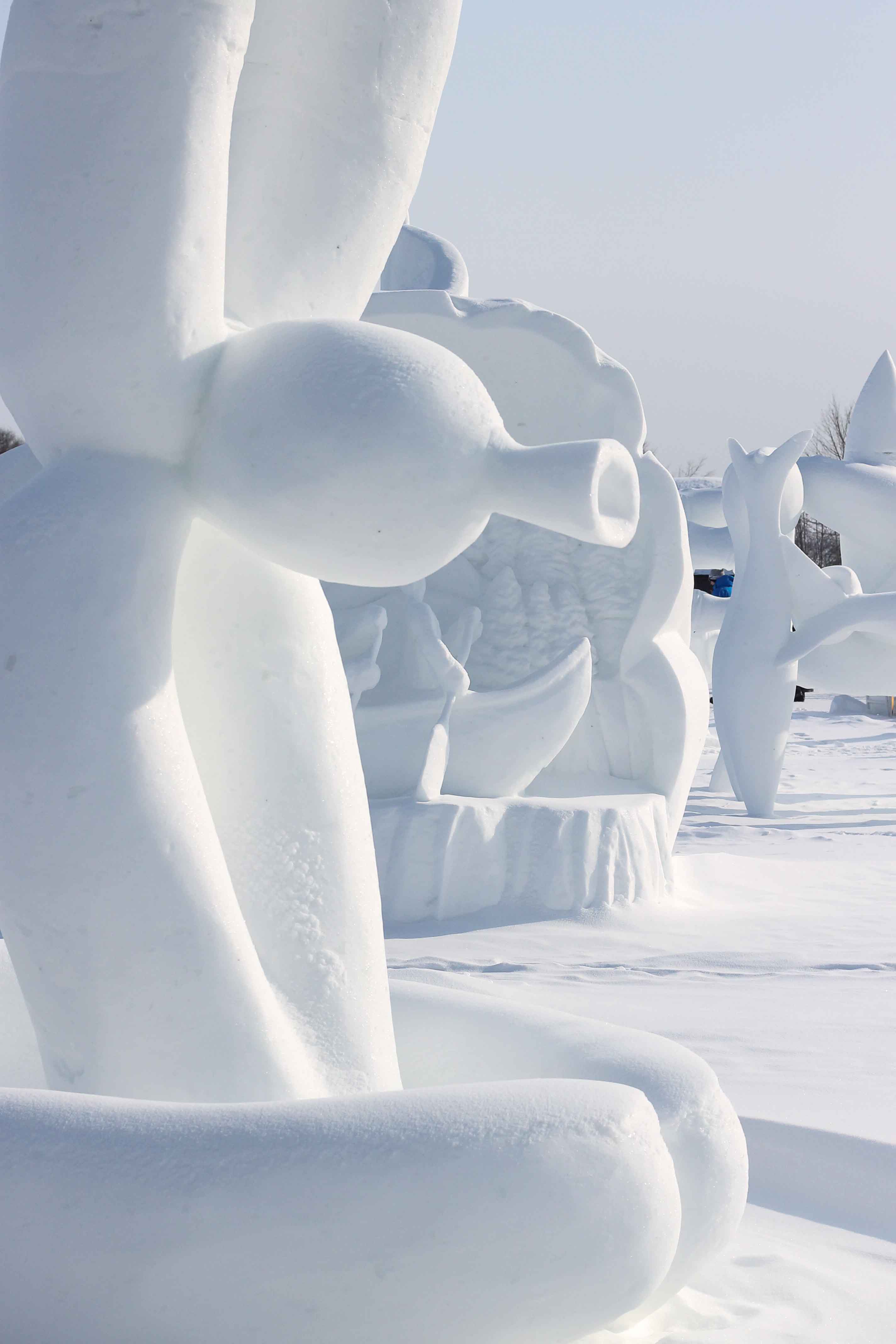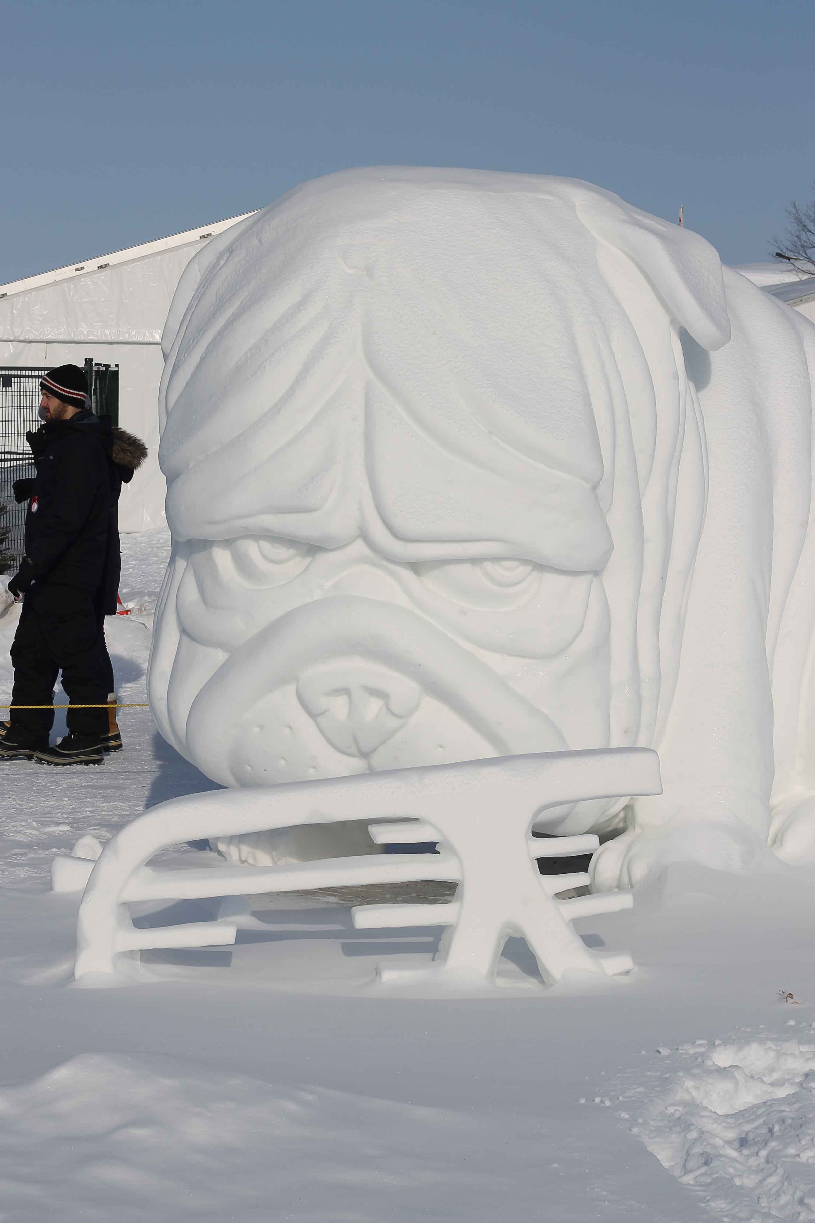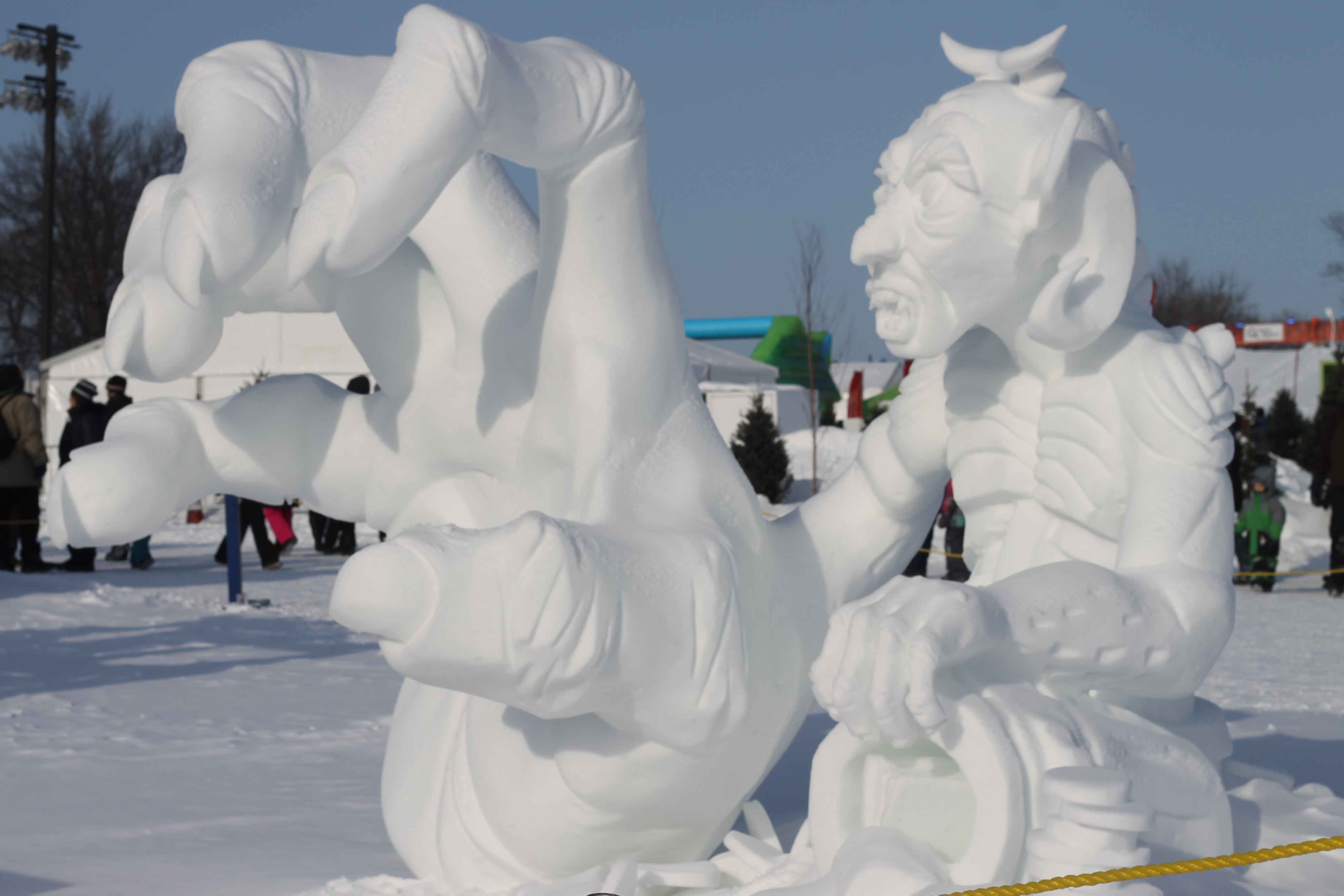 From the snow sculptures contest at the Quebec Winter Festival – an aerial anteater, perhaps?