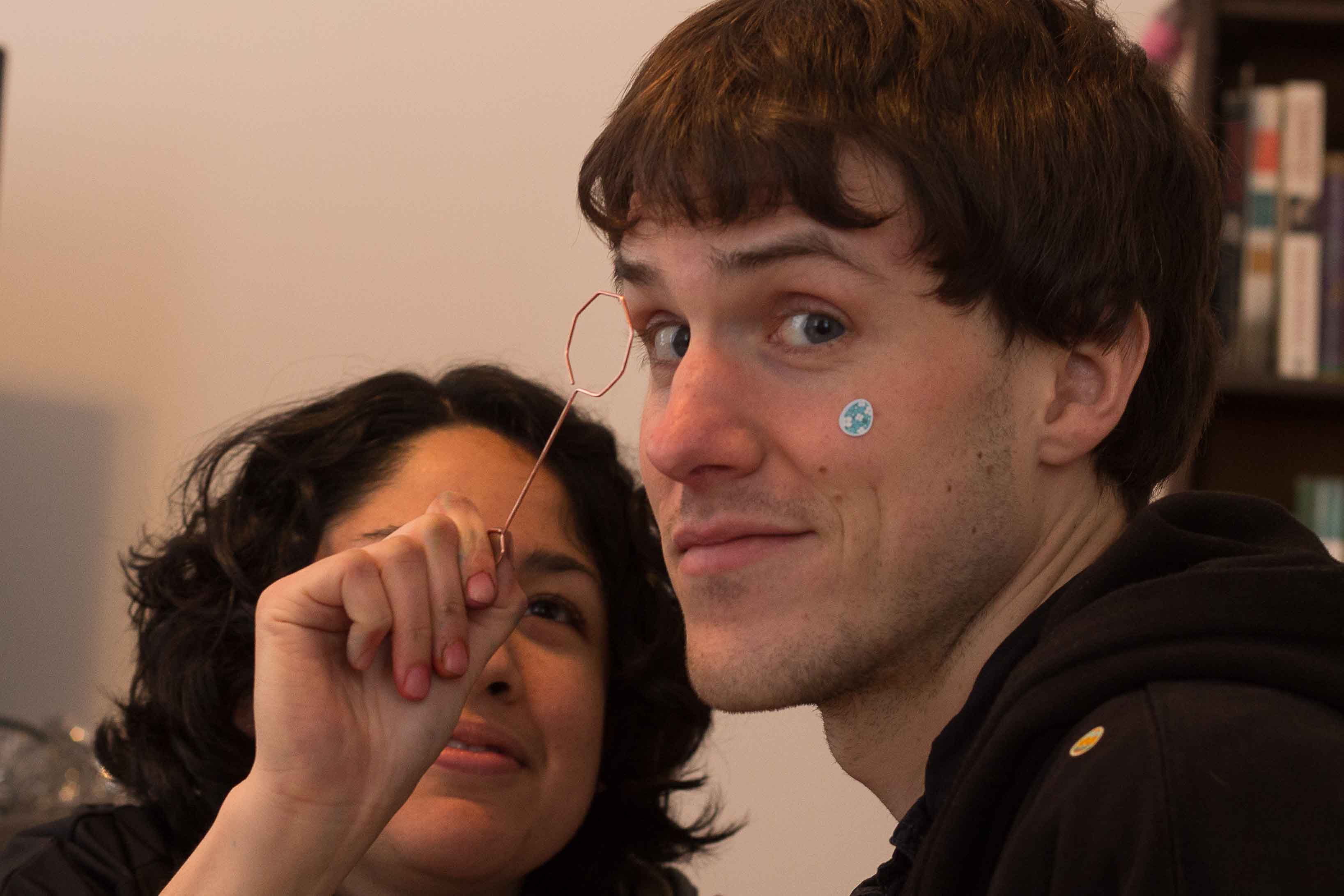 Lupe was obsessed with using the egg holders as monocles and forced Sean to model for her.