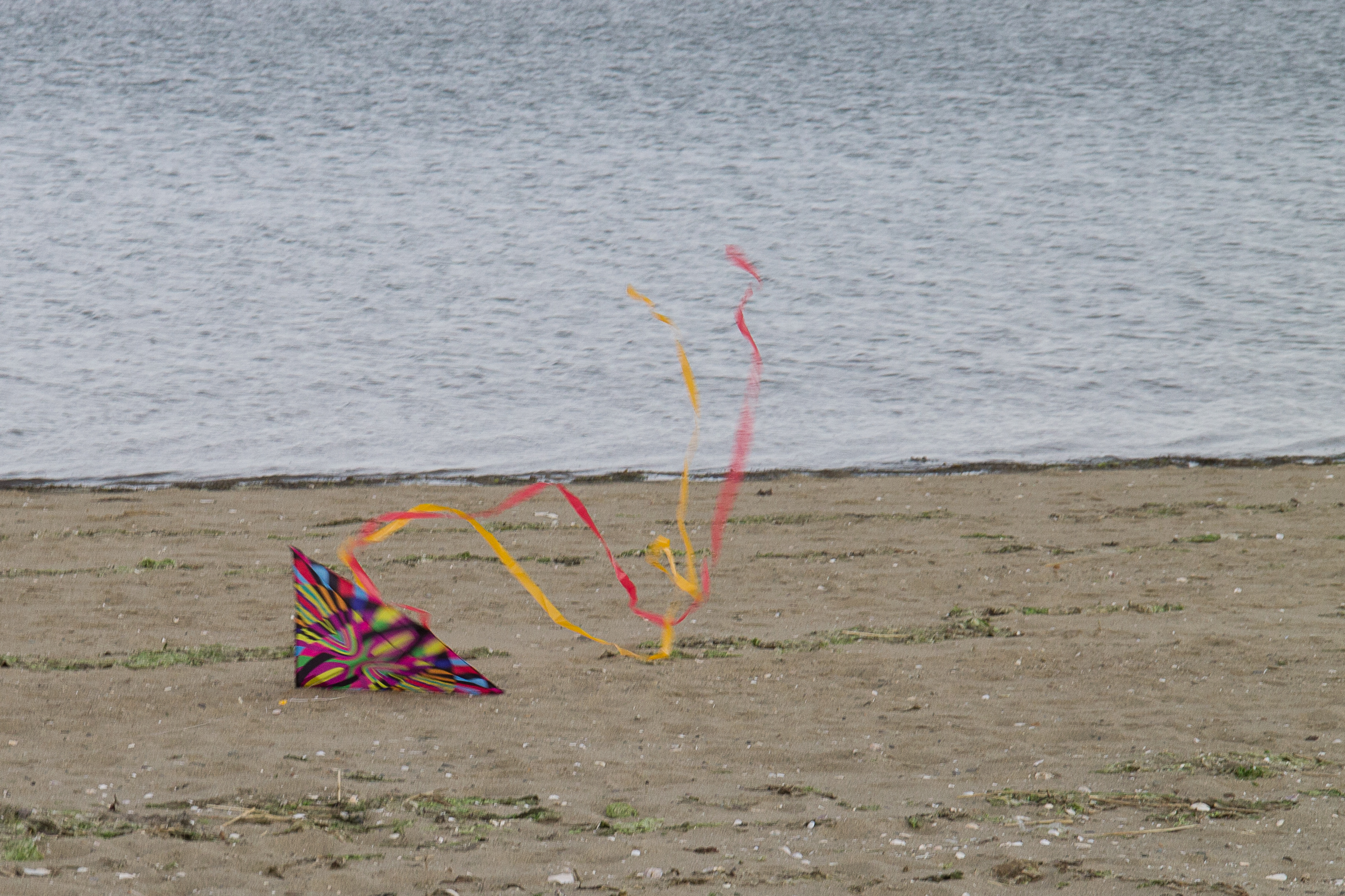 And fin as the kite hits the ground after its last flight of the day! It’s now hanging in our kitchen, waiting for another day.