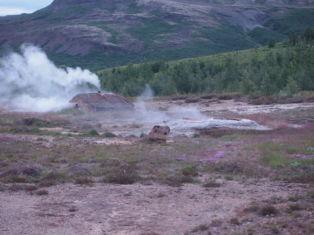 The nearby Strokkur geyser is very much not inactive. It erupt every 7–10 minutes, and this is what it looks like.