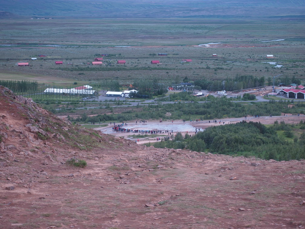 And you can look back at Strokkur. As you can imagine, when you have a geyser that erupts every 7–10 minutes, there will be a ring of people around it, holding up their cameras, waiting for it to erupt.