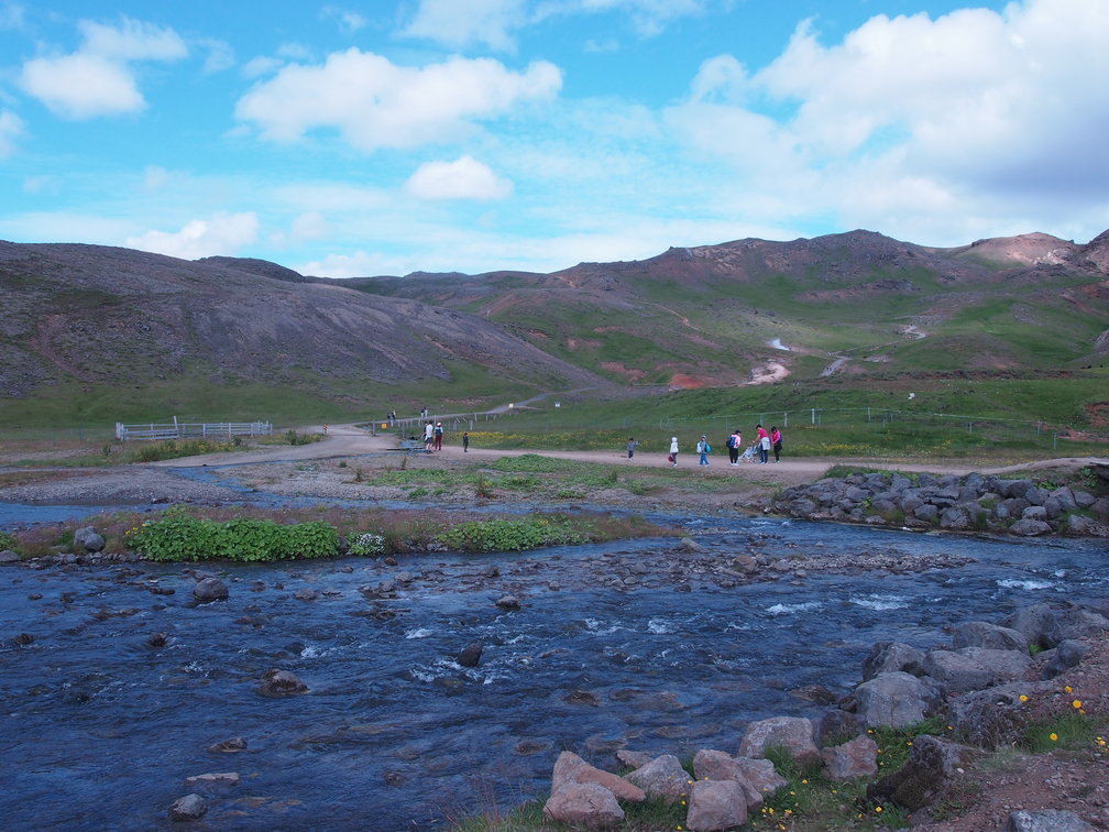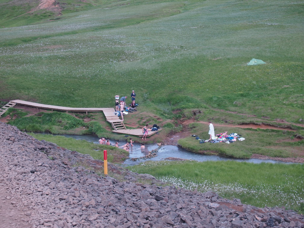 Which is the real reason we came to this spot, in Reynisdalur: to take a bath in the hot springs!